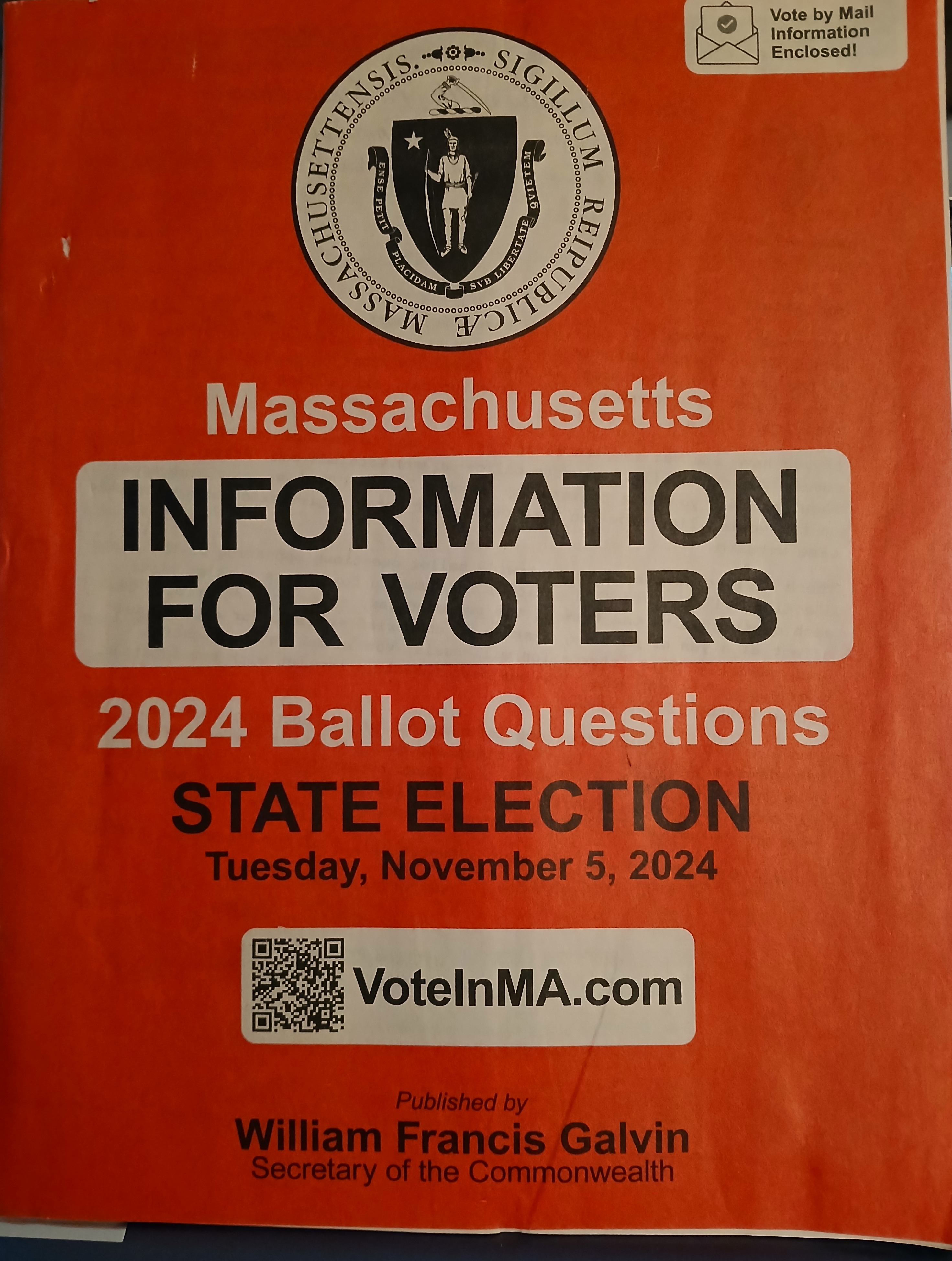 Recently we received in the mail a booklet called “Massachusetts Information for Voters”. It is very wordy. But fascinating. Of course, there are the usual categories to choose from like President, Senator, House Rep and some State Officials. AND there are five “Ballot Questions”.