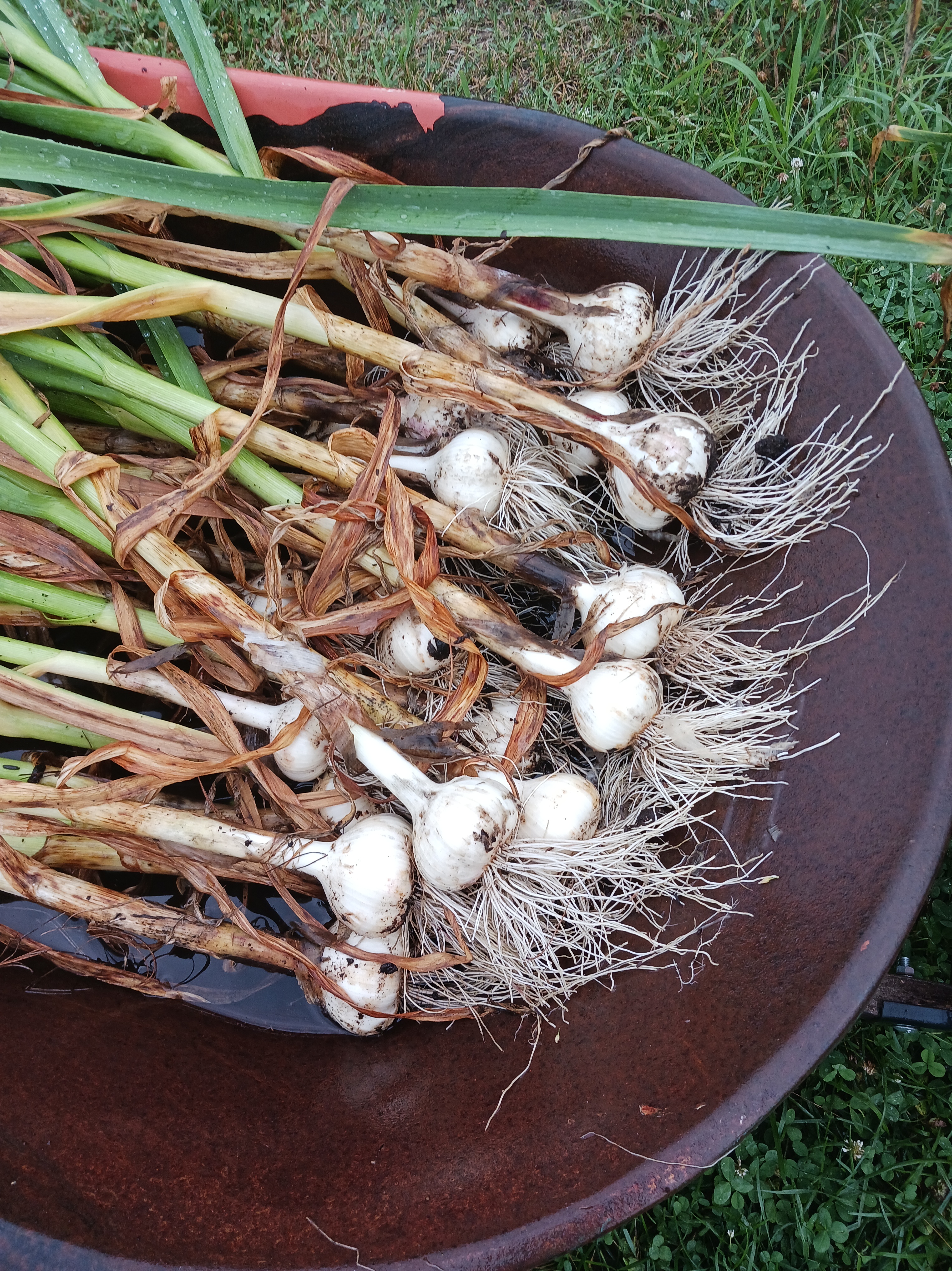 For those new to the subject, garlic is harvested in July when the leaves start turning brown. After curing in a cool dark place, we take the very largest cloves for planting in October. Eat the rest. It’s fun to say we are “garlic independent”. For more info and planting guides, visit Johnny’s Seeds – an employee owned company I have used for 40+ years. Even if you are not a farmer type, you might enjoy the catalog. Terrific photography – especially if you like staring at beautiful food.